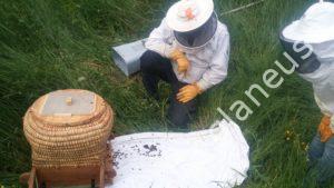 - Transvasement dans une ruche en paille après décrochage